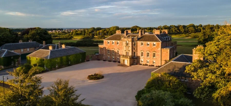 An elegant Lutyens-designed house overlooking Muirfield, celebrated for its walled gardens, timeless interiors, and gracious hospitality. The estate offers charming rooms and suites that blend classic character with comfort. This is also where the bride and groom became engaged in the gardens, making it a particularly meaningful place to stay and celebrate. Travel time: 5–10 minutes by car.