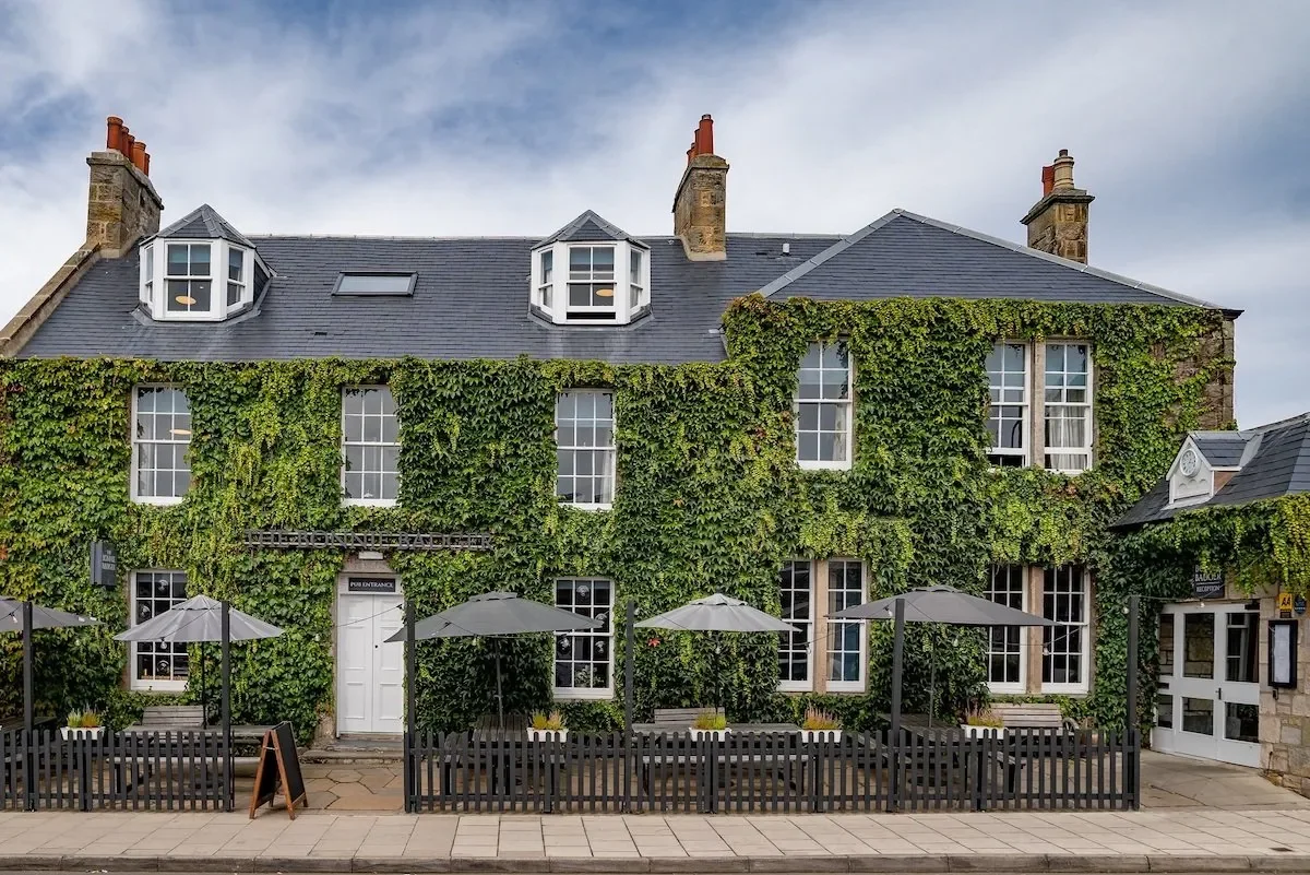 A classic seaside hotel blending historic charm with modern comforts, The Marine offers a spa, fine dining, and sweeping views of the West Links and the iconic Bass Rock. Guests can relax with treatments at the spa, enjoy afternoon tea, or simply take in the dramatic coastal scenery. Its location makes it easy to stroll along the waterfront into North Berwick, where shops, cafés, and restaurants provide a lively backdrop. Travel time: 10–15 minutes by car.